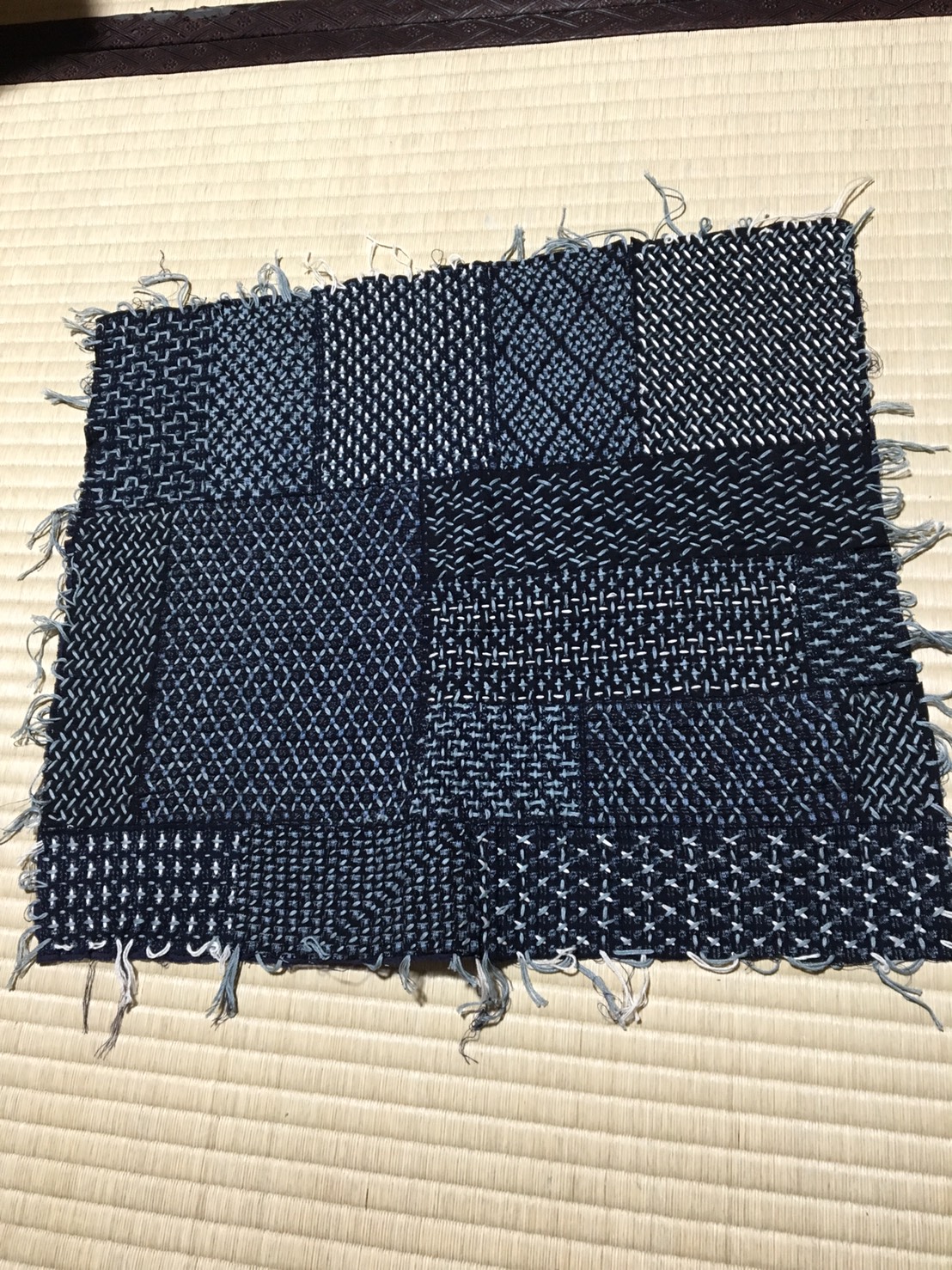 寄付頂いた布を 刺し子 で。