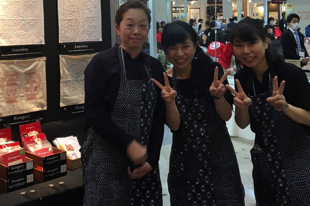 新しく刺し子針を発表&発売されるチューリップ(株)様のブースにて刺し子のデモンストレーションを行っています。あまり更新できていないウェブやインスタグラムですが、フォローしてくださっていた方ともお会いできたりして、とても楽しい時間を過ごしております。