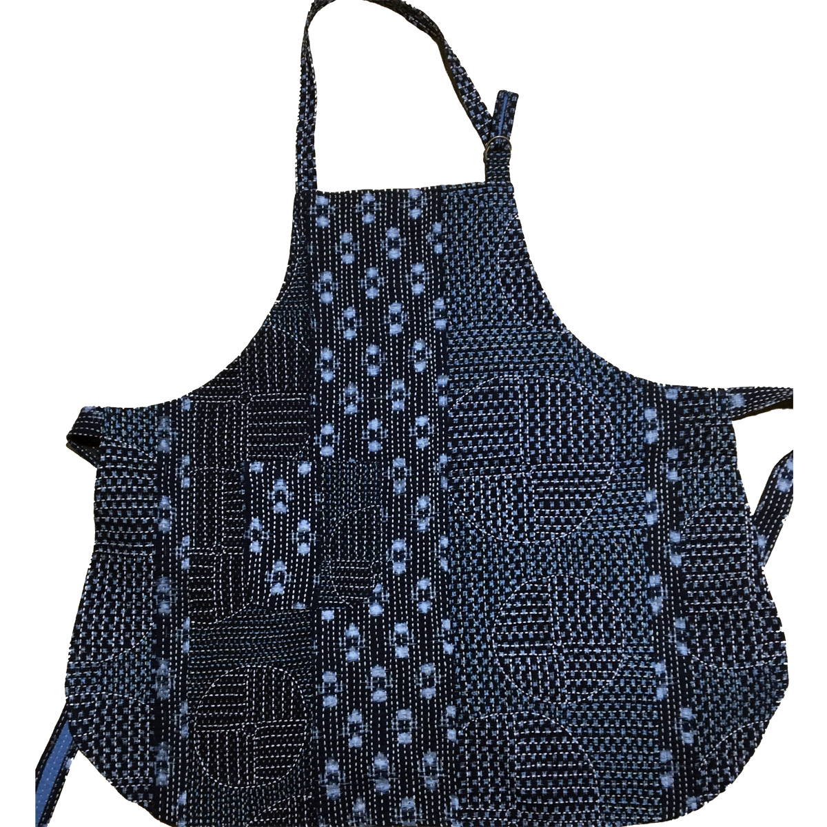 刺し子作品、ほんと沢山作っているので、それをウェブサイトでしっかり紹介していかねばなりません。頑張ります。ちなみに二ツ谷恵子とチューリップ(株)のスタッフ様が着用しているエプロンも、古布と刺し子を使った一点物のエプロンです。