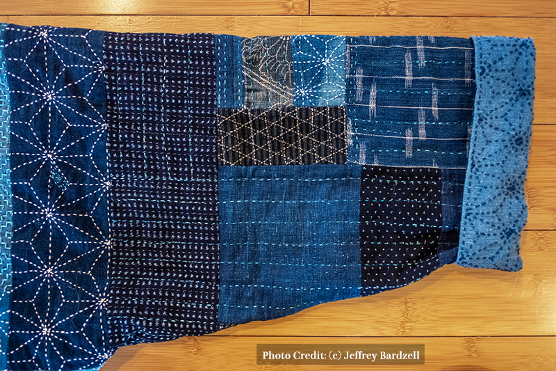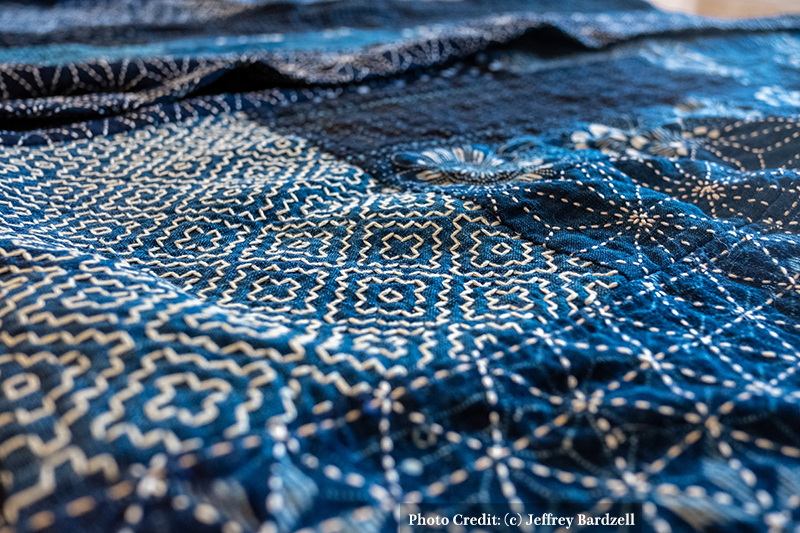 素敵な刺し子作品を作る為には、運針の技術であったり裁縫の技術であったりと、「刺し子の技術の熟練」は勿論必要です。また、幾何学模様であったり、独創的な柄であったりと、作品のテーマにそって表現をしたい刺し子を作れるセンスや知識もとても大切です。ただ、その「技術とセンス」だけでは完結しない所に刺し子の面白さがあると思っています。