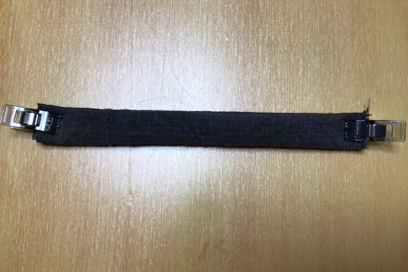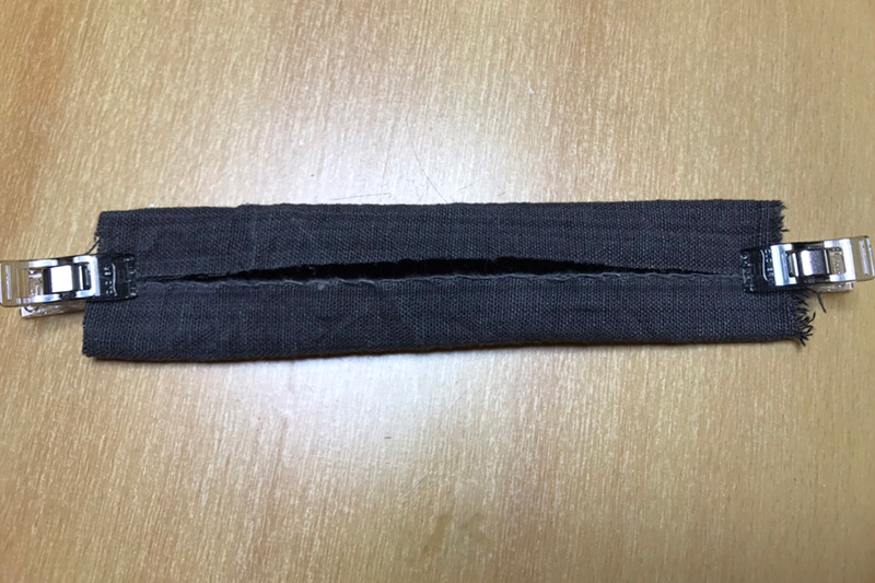 同封されている端切れは、紐を通す用のループを作る用途です。(勿論、それ以外に使われてもOKです)。ここでは、紐を通すようのループ(「チチ」とも言います)を作る手順を紹介します。