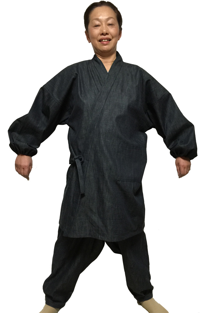 *この作務衣の着丈は少々長く見えてしまっています。お客様のご希望(お好み)の長さに調整できますのでご安心ください。