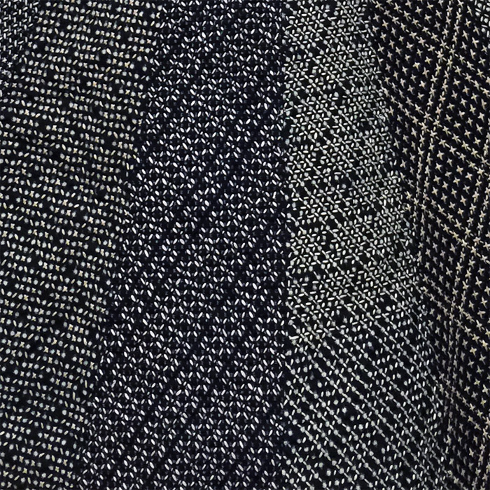 冬、家族のことを思いながら夏に使う野良着を補強し、また残った布で自分のモンペを補強し、また糸を使って模様を作り、わずかながらのおしゃれを楽しむ女性の仕事だった刺し子。