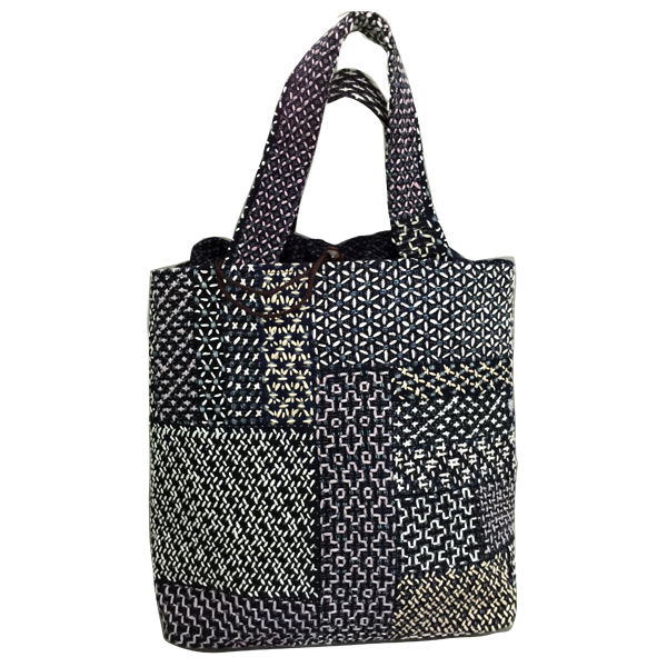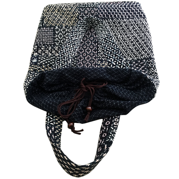 【品名】:一目刺しバッグ (巾着 / 持ち手も一目刺し)